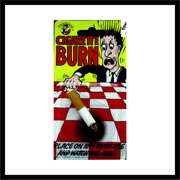 Τι;! Κάψιμο από τσιγάρο?!?! Όχι, απλά μια ακίνδυνη φάρσα. Αλλά φαίνεται τόσο αληθινό. Μοιάζει ακόμα και να καίει -- το μόνο που λείπει είναι ο καπνός. Η φάρσα λειτουργεί εξαιρετικά στους καπνιστές!