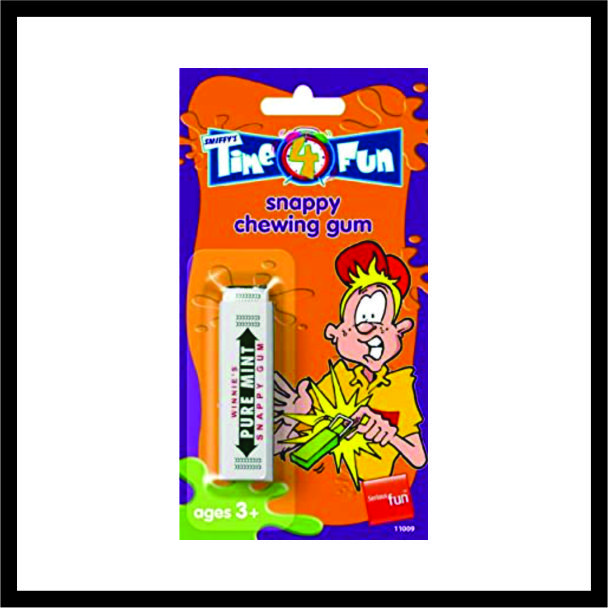 Έχετε βαρεθεί τους ανθρώπους που σας ζητούν την τσίχλα σας; Τότε πρέπει να αποκτήσεις ένα από αυτά τα κόλπα Snappy Gum! Αυτό μπορεί να μοιάζει με ένα συνηθισμένο πακέτο τσίχλας, ωστόσο καθώς το θύμα σας πλησιάζει για να πάρει μια φέτα από την χαρούμενη τσίχλα μέντας σας, απελευθερώνει άθελά του τη γούνα μιας συσκευής τύπου παγίδας ποντικιού που θα κουμπώσει στα δάχτυλά του! Ωχ! Απλώς για να σας διαβεβαιώσω ότι αυτό δεν θα αφήσει καμία μόνιμη σωματική βλάβη, το Snappy Chewing Gum θα αφήσει ωστόσο μια μόνιμη ψυχολογική εντύπωση που θα κάνει το θύμα σας να σκεφτεί δύο φορές πριν σας ζητήσει την επόμενη τσίχλα του!